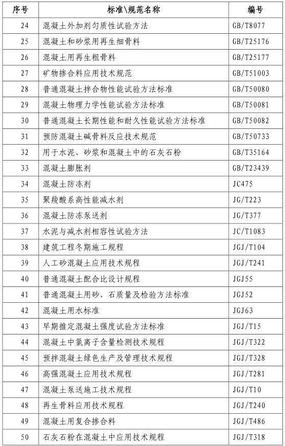 (三)预拌混凝土企业应严格按照《混凝土质量控制标准》(GB50164)、《预拌混凝土》(GB/T14902)、《混凝土结构工程施工质量验收规范》(GB50204)等国家和行业标准规范(附件1),以及合同约定和施工设计文件的技术要求,对原材料质量、混凝土配合比、混凝土性能开展质量检验及质量控制工作。