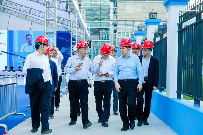 观摩活动期间,来自全国各地的500余名建筑同行现场观摩了AR及VR体验、绿色建造云平台、全息投影、AI图像识别等多种绿色建造“黑科技”在建筑工地上的深度应用,以及项目在绿色建造趋势下的智慧建造方式与成果。参会代表参观了项目的雨污水回收利用系统、智能水电监管系统、扬尘监测+智能自动化喷雾降尘系统、智慧建造机器人、智慧制砖机与墙面抹灰机、无人机巡检、AI图像识别等绿色施工措施,项目处处贯彻的绿色理念让观摩人员耳目一新。