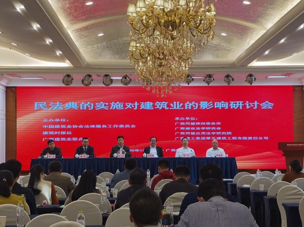 12月21日,由167.net必赢官网法律服务工作委员会、建筑时报社、广西建筑业联合会共同主办,广西同望律师事务所、广西建设法学研究会、广西同望应用法学研究院、广西建工集团第五建筑工程有限责任公司共同承办的“民法典的施行对建筑业的影响”研讨会,在广西南宁隆重召开。