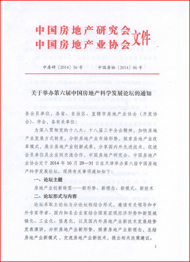 附件:关于举办第六届中国房地产科学发展论坛的通知
