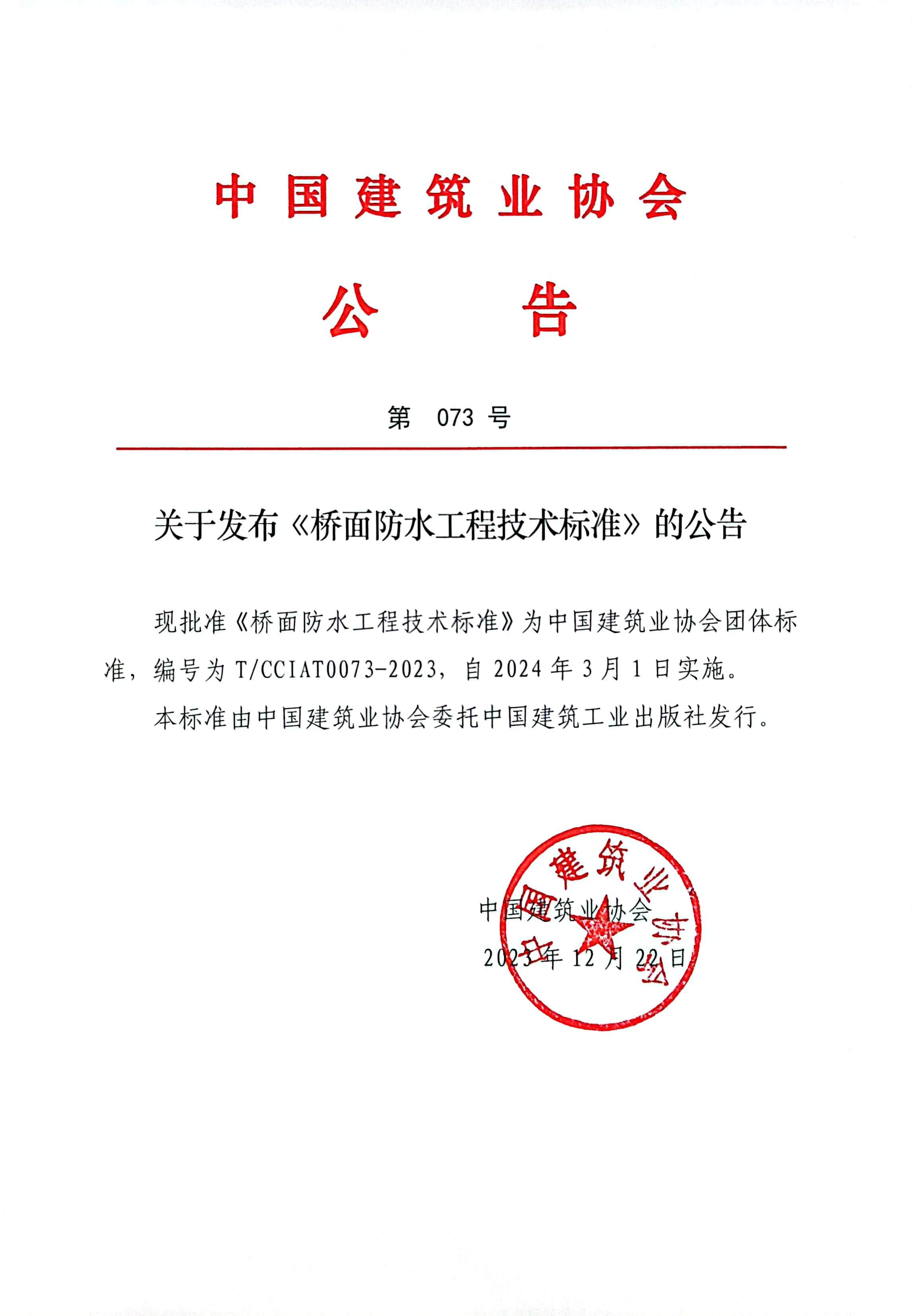 关于发布《桥面防水工程技术标准》的公告