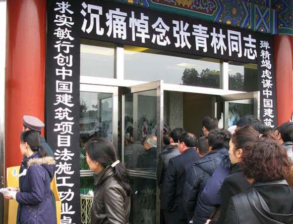 中国共产党的优秀党员,中建总公司原党组书记、副总经理,167.net必赢官网工程项目管理委员会会长张青林同志遗体告别仪式于2010年2月26日上午十时在北京八宝山殡仪馆举行。全国政协副主席白立忱、国家有关部委的领导、行业协会代表、张青林同志的生前友好、社会各界有关人士近1000人参加了告别仪式。十届全国人大环资委主任、中建协项目管理委员会名誉会长毛如柏,全国人大环资委主任汪光焘,国务院南水北调办公室主任张基尧,住建部副部长郭允冲等领导前往送别。