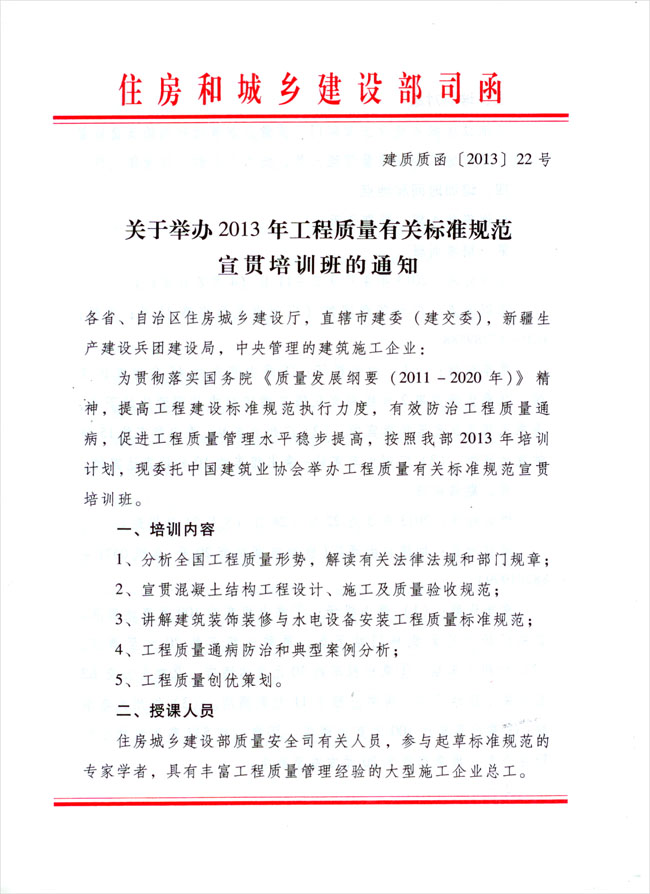 附件:关于举办2013年工程质量有关标准规范宣贯培训班的通知