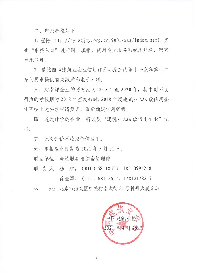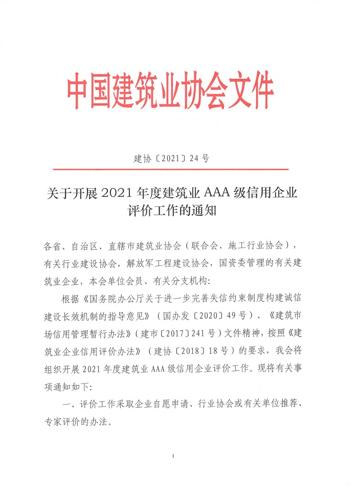关于开展2021年度建筑业AAA级信用企业评价工作的通知