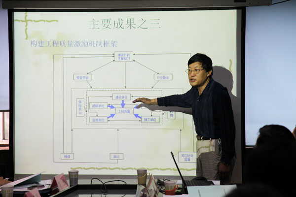 图1:《提高工程质量水平的激励机制研究》课题报告评审会现场