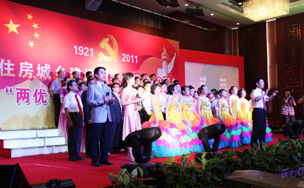 九十年风雨历程,九十载光辉岁月。为纪念中国共产党成立90周年,2011年6月21日,住房城乡建设部在北京隆重召开纪念建党90周年“两优一先”表彰大会暨文艺演出。部机关及部直属事业单位450名干部职工欢聚一堂,追忆红色历史,抒发爱国情怀,用嘹亮的歌声和卓越的工作业绩向党的生日献礼。