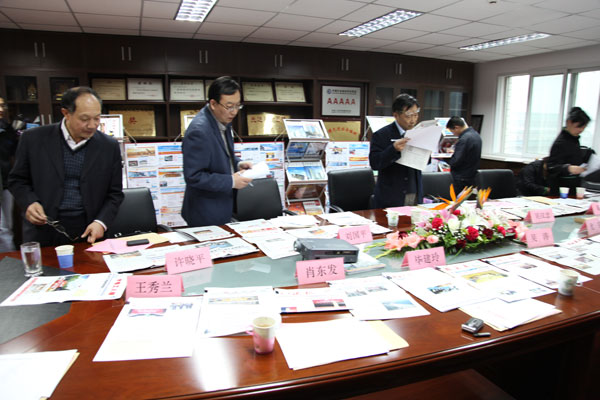 图3、4:与会专家评审优秀报纸