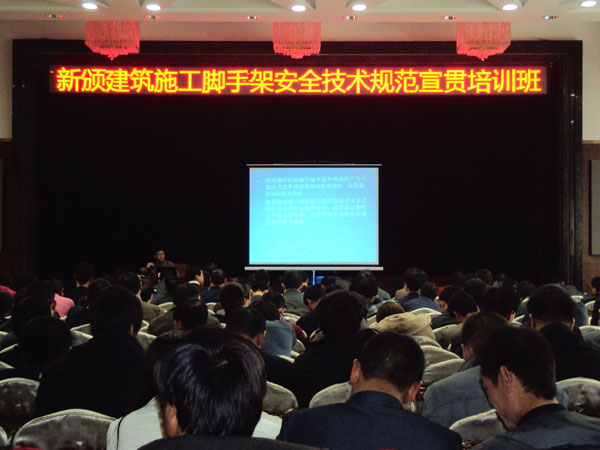 为贯彻落实新颁《建筑施工工具式脚手架安全技术规范》和《建筑施工扣件式钢管脚手架安全技术规范》,促进企业技术人员全面掌握新标准的主要内容及强制性条文要求,确保施工人员在使用扣件式脚手架和工具式脚手架施工过程中的安全,我会会同甘肃省建筑业联合会,于11月9-12日在兰州举办了两期《建筑施工扣件式钢管脚手架安全技术规范》和《建筑施工工具式脚手架安全技术规范》宣贯培训班,来自省内各施工企业的1000多名施工技术人员和一线操作人员参加了培训。