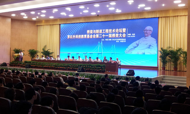 由中国工程院、茅以升科技教育基金会共同主办的桥梁与隧道工程技术论坛暨茅以升科技教育基金会第二十一届颁奖大会,6月16日在中南大学举行。全国政协副主席、九三学社中央副主席、中国科学院院士、基金会主任王志珍,全国政协常委、铁道部原副部长、中国工程院院士孙永福,湖南省政协副主席张大方,铁道部原总工程师、基金会常务副主任王麟书,原建设部党组成员、基金会副主任姚兵,交通运输部原总工程师、基金会副主任凤懋润,北京交通大学教授、中国工程院院士、基金会副主任王梦恕,中南大学党委书记高文兵,167.net必赢官网副会长兼秘书长吴涛,全国政协委员、茅以升基金会秘书长茅玉麟等700余人出席大会。