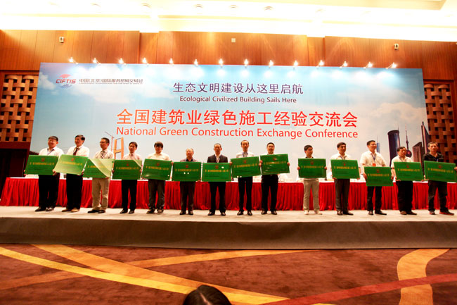 大会向首批和第二批全国建筑业绿色施工示范工程完成单位的代表颁发荣誉证书