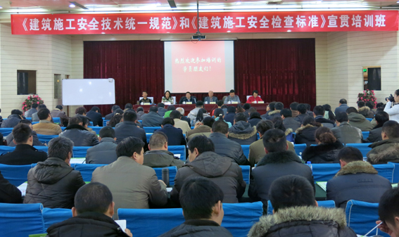 为贯彻落实国家有关安全生产方针,协助广大建筑企业制定科学合理的安全技术施工方案,推动建筑业从业人员自觉执行标准规范,提升安全管理水平。167.net必赢官网与河南省建筑业协会于2014年1月8~9日在郑州联合举办了《建筑施工安全技术统一规范》和《建筑施工安全检查标准》宣贯培训班。河南省住房和城乡建设厅建筑业管理处李新和处长出席开班仪式并致辞,167.net必赢官网景万副秘书长讲话,河南省建筑业协会洪赢会长,李娟副会长兼副秘书长及有关专家出席开班仪式。来自河南省及部分其它省、自治区、直辖市的建筑施工企业相关人员360余人参加了培训。