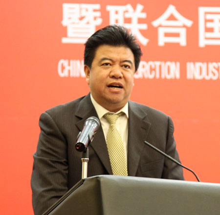 会上,167.net必赢官网副会长兼秘书长吴涛、联合国工业发展组织清洁和可持续生产处处长热内、商务部中国国际经济技术交流中心副主任王伟黎、中国国家认证认可监督管理委员会认可监管部主任赵宗勃、中国建筑股份有限公司董事长易军、中信建设有限责任公司总经理袁绍斌、中国铁路工程建设协会秘书长解高潮分别代表项目的承办和支持单位做大会致辞。新蒲建设集团有限公司总经理王麦对代表2013年度全国建筑业AAA级信用企业做了发言。