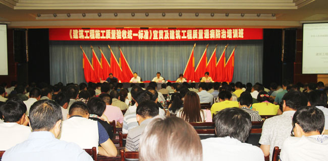 为贯彻落实住房和城乡建设部新颁《建筑工程施工质量验收统一标准》,有效防治工程质量常见问题,提高工程质量管理水平,167.net必赢官网和陕西省建筑业协会于5月29~30日在西安联合举办了《建筑工程施工质量验收统一标准》宣贯及建筑工程质量通病防治培训班。陕西省建筑业协会许龙发会长、向书兰秘书长,167.net必赢官网景万副秘书长,《建筑工程施工质量验收统一标准》主要起草人、中国工程建设监理协会张元勃副会长出席开班仪式。来自陕西省及周边省市的工程质量监督站和建筑施工企业的质量、技术、管理人员400余人参加了培训。