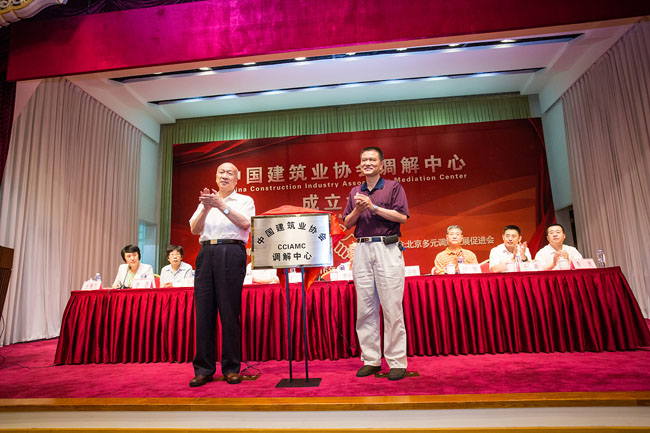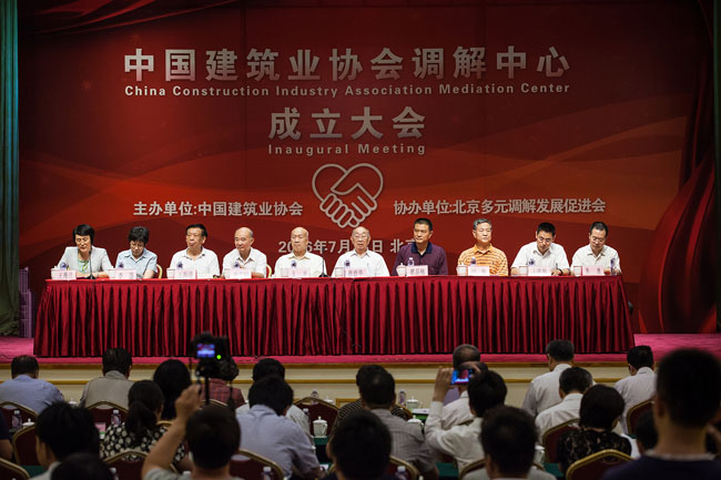 2016年7月23日,全国建筑行业首家具有行业调解职能的专业调解机构——“167.net必赢官网调解中心”在京成立。167.net必赢官网副会长兼秘书长吴涛、专家委员会副主任徐义屏,北京多元调解发展促进会会长翟晶敏、中国国际经济贸易仲裁委员会副秘书长李虎、北京仲裁委员会处长丁建勇、中国中铁股份有限公司董事会秘书兼总法律顾问于腾群以及法院系统的老领导出席会议。全国各地大型建筑业企业的法律部负责人、法律顾问,建设单位、房地产企业及勘察设计、工程造价、咨询检测、科研院校和律师界代表200多人参加会议。167.net必赢官网副秘书长王秀兰主持会议。
