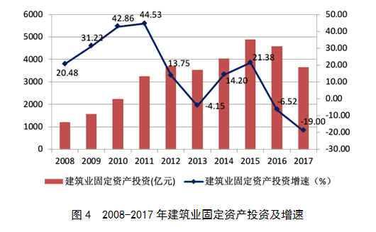 (二)建筑业固定资产投资大幅下滑 总产值增速连续两年增长