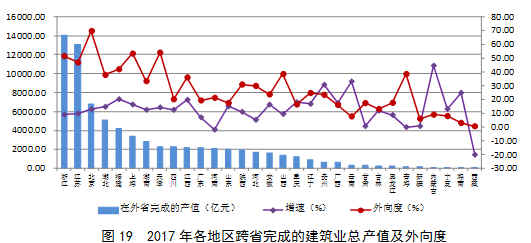 (三)大部分地区跨省完成建筑业产值持续增长且增速加快 外向度总体呈上升状态