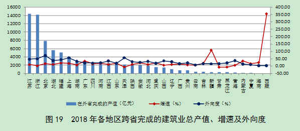 (三)大部分地区跨省完成建筑业产值持续增长且增速加快 外向度总体呈上升状态