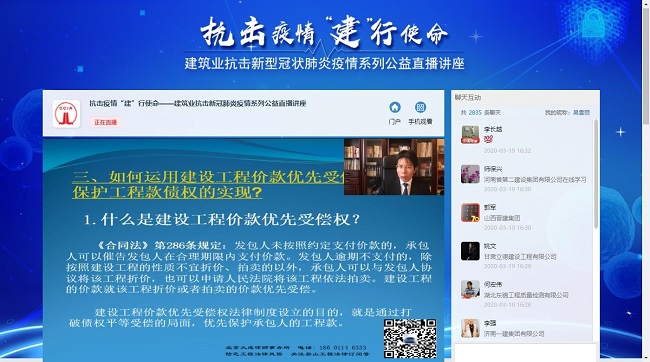 系列公益直播讲座为建筑行业在抗击新冠肺炎疫情、企业复工复产工作提供了有力的支持和帮助,受到了广大建筑业企业的好评。