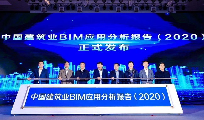 会议举行了《中国建筑业BIM应用分析报告(2020)》(后简称《报告》)的发布仪式。《报告》主编单位领导刘锦章副会长、汪少山副总裁为参会单位代表进行了赠书。