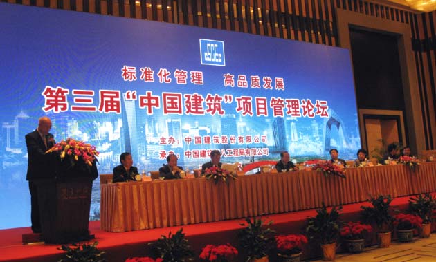 在刚刚过去的2011年,中国建筑股份有限公司实现营业收入4828亿元,预计营业规模位居全球建筑承包商之首。易军董事长在论坛上指出,30年来,中建发展成为中国建筑地产行业的龙头企业,与持续的改进项目管理密切关联。目前,中建确定了“十二五”的发展策略是专业化、区域化、标准化、信息化、国际化。其中标准化既是“五化”策略的重要组成部分,又是其他四化的重要支撑,而项目管理标准化则是基础。因此,要以项目管理标准化为手段,提高项目管理的效率,促进集约化发展,不断强化项目管理标准化的内涵、深度和广度,体现中建对项目管理品质的追求,为客户、为社会创造更大的价值。