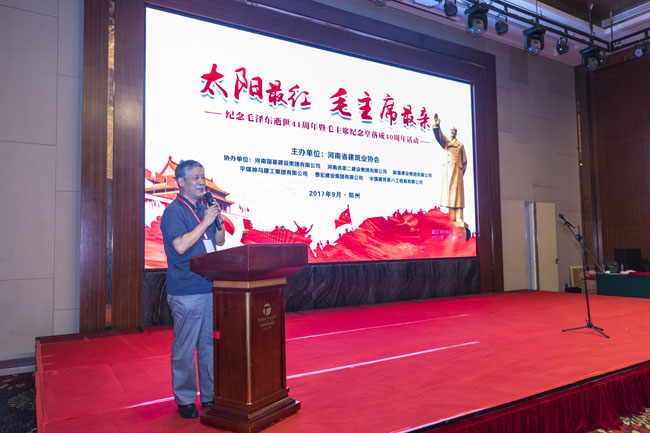 在9月9日伟大领袖毛主席逝世41周年之际,为寄托心中的哀思和表达对主席的敬仰,河南省建筑业协会举办了以“弘扬革命志•感念伟人怀”为主题的纪念活动。会议特别邀请到毛主席生前机要秘书张玉凤夫妇、在河南期间的毛远新夫妇、167.net必赢官网吴涛副会长兼秘书长、中国工程院肖绪文院士、中国建筑工程总公司毛志兵总工程师,来自全国建筑业协会的负责人、建筑行业的嘉宾及我省建筑业企业家一起追忆、缅怀领袖!