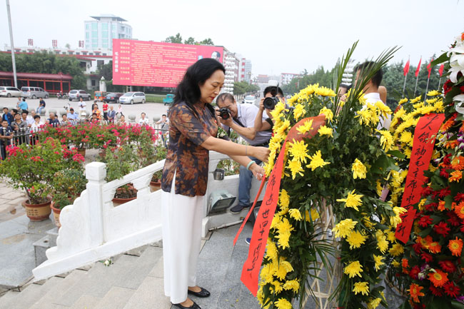 河南省建筑业协会常务副会长兼秘书长李娟向主席雕像敬献花篮