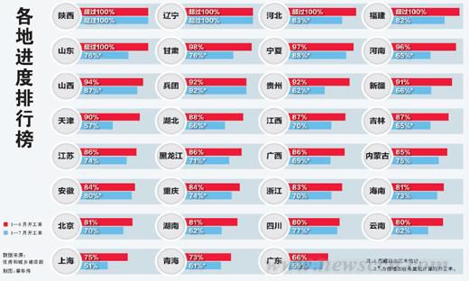 5月底三成开工,6月底开工过半,7月底开工率超七成,8月底开工率达86%,各地保障房建设成绩可谓搭上了快车,月月都有新气象.