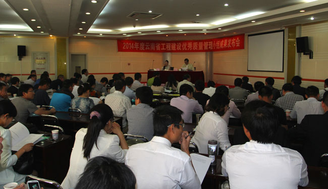 为促进QC活动深入开展,加强行业内部交流,及时总结已取得的QC成果,推动QC小组活动蓬勃发展,2014年4月25日至26日,云南省建筑业协会在云南省科技管理干部培训中心组织召开了“2014年度云南省工程建设优秀质量管理小组成果发布会”。云南省住房和城乡建设厅原厅长、云南省政府九大高原湖泊水污染防治督导组秘书长、云南省建筑业协会会长程政宁,云南省建筑业协会秘书长吴明燕等领导出席发布会,来自全省施工企业技术管理人员以及QC小组成员180余人参加了本次发会。