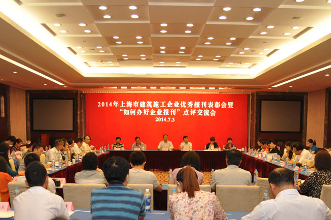 7月3日,上海市建筑施工行业协会召开2014年上海市建筑施工企业优秀报刊表彰会暨“如何办好企业报”专题交流会,上海市建设和交通委思想政治工作研究会秘书长杭财宝、《建筑时报》原总编李晓华、《上海建筑建材业》原副主编杨瑛、《建筑时报》建筑法苑栏目主编孙贤程等四位优秀报刊评委和施工协会副会长兼秘书长高志海以及施工企业分管领导、企业报刊主编、编辑、企业文化建设工作者近80人参加会议。