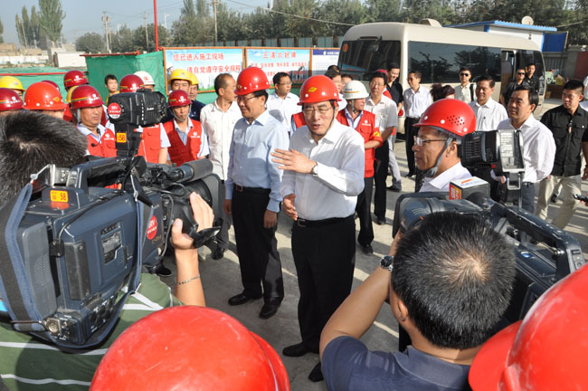 通过参观工程实体和听取汇报,郭金龙书记表示在深入地贯彻中央第二次新疆工作会议精神之际来到和田调研援疆工程看望援疆战士,一线援疆人员用了两年时间将这座具有标志性的、对口支援项目——和田北京医院基本建成。对此,他代表北京市委和市政府对参建全体援疆职工表示衷心的感谢和慰问。他称北京建工集团一直以来是一支敢打硬仗,能打胜仗的队伍,多次急难险重时刻都能出色地完成任务。他希望北京建工援疆将士们继续弘扬老一辈的光荣传统,再接再厉、保质保量的做好对口支援新疆的各项工作,共同努力,在中央的领导下把新疆建设好!