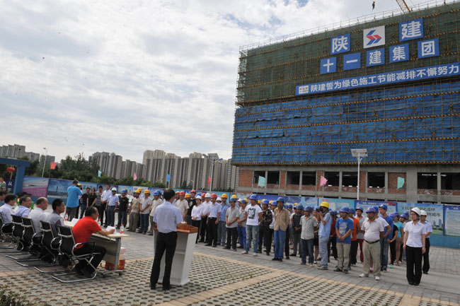 7月8日上午,陕西省总工会副巡查员、教育厅工会主席李敏、省总工会法律保障部副部长李宏伟领导一行,在西安理工大学工会主席、党委副书记刘凯和集团党委书记、董事长黄永根的陪同下,来到理工大图书馆项目现场,看望慰问炎炎夏日依然坚守岗位的施工一线人员,为施工、监理、劳务等单位所有工作人员送来了价值达2万元的防暑降温用品。