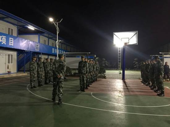 在嘹亮的军号声中,大家迅速起床,快速洗漱,整理寝室内务,穿上统一饿迷彩服,前往篮球场集合。这不是部队也不是学校集合军训,而是中建三局二公司基础设施公司107国道扩改项目部开展为期15天军事化训练的第一天。