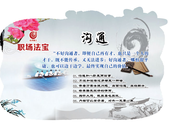 近日,在北京建工四建公司各单位微信朋友圈中,大家都在踊跃推荐自己读过的好书和好文章,分享收获体会,其中该公司天津鲁能七号院项目部还把党支部书记冯舜推荐的一篇《你靠什么在单位立足?》文章制作成“职场宝典展板”张挂在办公区走廊上,12块展板包括沟通、成本、团队、感恩、责任等内容,引起了项目部青年员工的强烈共鸣。为全面深化学习型企业文化建设,在全体员工中树立“读书丰富生活,知识改变人生”的理念,进一步提升员工队伍素质建设,鼓励员工保持和养成良好的阅读习惯,在公司形成一种“我要阅读,乐于分享”的良好氛围,从2017年起北京建工四建公司党委正式启动“阅读与分享”读书系列活动。