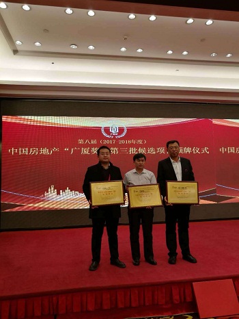 “广厦奖”是经住房和城乡建设部批准,由中国房地产业协会、住房和城乡建设部住宅产业化促进中心共同设立的我国房地产开发项目的综合性大奖,相当于鲁班奖,是房地产综合开发行业的较高荣誉。