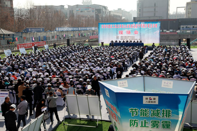 会上,高省安传达了西安市铁腕洽霾工作会议精神,安排部署了建设工地及两类企业铁腕治霾专项整治常态治理工作。雁塔区建设局局长白景哲、航天基地建设环保局局长夏楠、陕建八建集团总经理章辉分别就西安市建设工地及两类企业铁腕治霾专项整治常态治理作了表态发言。
