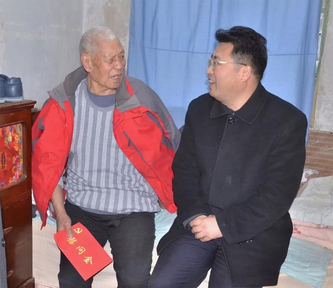 在90岁高龄、有着73年党龄的老党员延计拴家中,四建集团党委副书记、总经理宋轮航与延老及其家属亲切交谈,详细询问了他们的家庭基本情况、工作经历、日常生活起居及身体健康等方面的情况,向他致以新春问候和美好祝愿,并送上慰问金及慰问品。宋轮航表示,四建集团发展成绩的取得离不开老同志打下的坚实基础,希望老同志在保重身体的同时,继续发挥余热,关心和支持四建集团发展,多向四建集团提宝贵意见和建议,并衷心祝愿老同志新春愉快,身体健康。
