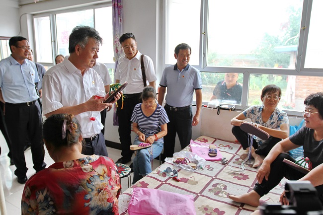 千方百计拓宽增收渠道,这是北京建工对驻村第一书记的要求,也是我在下垙村精准帮扶的追求。我明白,和很多农村一样,下垙村有大量外出务工的青壮年,和留在村中,平均年龄不小,缺乏成规模农业生产能力的村民家庭,对于下垙村的乡亲们来说,“两不愁三保障”愿景的长久实现,不能只系于一只“米袋子”上。路过村民的院子,看见院儿里扎堆儿闲坐的村民大姐们,我突然有了新的主意。“谁说‘扎堆儿坐’就不能是生产力?”说干就干,我赶紧行动起来,在城区通过个人关系联系了一位精通手工艺编织的匠师,邀请老师到村里,原材料配齐,老师开始给村民们上起了编织课。针怎么穿、绳怎么走、花样、纹路都怎么做出来、怎么定型……几堂课下来,村民大姐们的心灵手巧让我对自己的计划有了更多信心,很快,一双双村民原始创意、手工编织的拖鞋开始让下垙“手工村”的品牌在乡里小有名气。村民编织的拖鞋,不算精致、华丽、繁复,却透着原生态的质朴和“地气”,到2019年底,编织手工拖鞋的低收入户增加到了8户,编出拖鞋215双,当年,这8户村民总计增收达2.3万元。如今,疫情防控阶段到来,村民们居家盘腿坐炕头,这对编织拖鞋来说非但不受影响,反而正当其时,在我的努力下,这些手工编织的拖鞋上线了精准帮扶的网上平台,很快,邻村的订单,北京建工四建公司工会的订单纷至沓来,周边一个村,一次下单就是500双,“现在产能出来了,大姐们要开足马力了。”在我不断的勉励中,大姐们一天比一天清楚地看到了劳动带来的价值,大家一针针编织的不是拖鞋,而是自己越来越美好的日子。