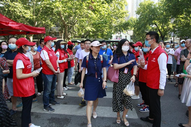 即将开考,气温一早就攀升到30多度,但志愿者送来的一瓶瓶矿泉水、一句句鼓励的话,吹散了空气中的紧张和闷热。(文/姚祖烨 图/陈玺龙)