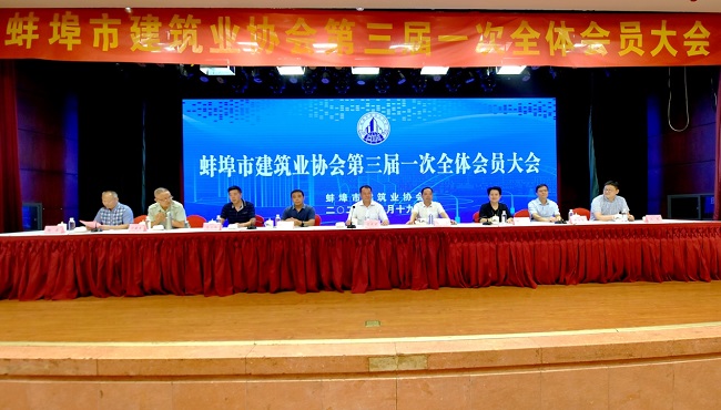 2020年8月19日9时,蚌埠市建筑业协会第三届一次全体会员大会在安徽水利和顺大酒店隆重召开。蚌埠市人民政府副市长王庆武,副秘书长徐行忠到会指导并讲话,市住建局党委委员、副局长徐文伯、市民政局民间组织管理局副局长马立场、市建管处主任唐士全、安徽省建筑业协会秘书长马丽女士、市政工程协会副秘书长江军、市住建局、建管处、三县六区建设主管部门负责人及339家会员单位出席了会议。会议还收到了来自省内合肥市、滁州市、阜阳市、安庆市、黄山市、淮北市等兄弟协会发来的贺信贺电。