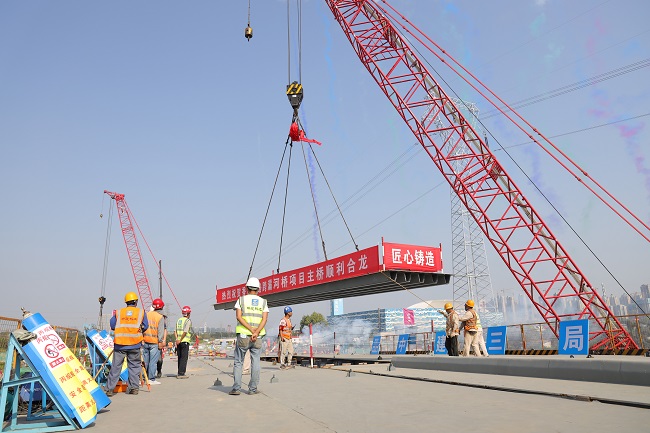合龙仪式上,姚宽一致欢迎词。他表示,要以最优秀的管理团队,最强大的资源配置,最过硬的责任担当,弘扬铁军作风和工匠精神,全力以赴实现大桥年底通车,打造经得起历史检验的安全工程、绿色工程、精品工程,以中建智慧、中建方案、中建力量,全力拓展浐灞生态区幸福空间,不断满足人民群众对美好生活的向往。