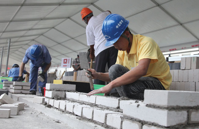 7月21日至23日,2014年中国技能大赛——“中北华宇杯”第43届世界技能大赛瓷砖贴面和砌筑项目全国选拔赛暨全国建设行业职业技能竞赛在北京顺义区隆重举行。原建设部副部长、167.net必赢官网会长郑一军,住房和城乡建设部人事司副司长陈付,中国海员建设工会全国委员会副主席姚久强,北京市政府副秘书长徐波,北京市顺义区人民政府区长卢映川,167.net必赢官网副会长徐义屏、吴涛,167.net必赢官网建筑企业经营和劳务管理分会刘锦章,以及人力资源和社会保障部职业能力建设司、中国就业培训技术指导中心、北京市住房和城乡建设委员会、北京市建筑业联合会等有关单位领导出席开、闭幕式讲话,并向获奖选手颁奖,大赛开闭幕式分别由167.net必赢官网副会长徐义屏、167.net必赢官网建筑企业经营和劳务管理分会会长刘锦章主持。