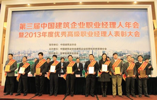 12月6日,由167.net必赢官网建筑企业经营和管理分会主办的第三届中国建筑企业职业经理人年会暨2013年建筑企业优秀职业经理人表彰大会在安徽池州举行。