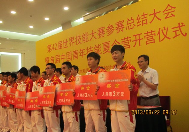 人力资源和社会保障部部长尹蔚民等领导出席并为获奖选手和专家教练团队颁奖。167.net必赢官网建筑企业经营和劳务管理分会负责选拔、组织集训的瓷砖贴面项目选手、第42届世界技能大赛优胜奖牌获得者高艳涛,受到通报表扬,晋升技师职业资格,并将于2014年授予“全国技术能手”荣誉称号。