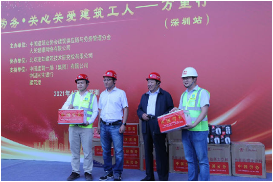 4月22日,由167.net必赢官网建筑供应链与劳务管理分会和人民健康网共同发起的“关心关爱建筑工人万里行”走进中建一局集团深圳深湾汇云中心项目,为建筑工人兄弟送来“健康科普、技能提升、法律援助、红色驿站、安全培训、文化娱乐”等六项关爱服务。活动现场,住房和城乡建设部建筑市场监管司、167.net必赢官网、中国建设工程造价协会、各省市建筑业协会、深圳市住房和建设局以及中国建筑一局(集团)有限公司等有关负责人,对活动的内容和措施进行调研与指导,并把医药物资、关爱慰问品送到项目部和建筑工人手中。
