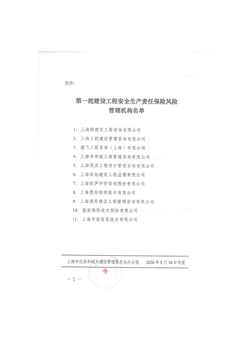 上海市住房和城乡建设管理委员会关于公布第一批建设工程安全生产责任保险风险管理机构名单的通知